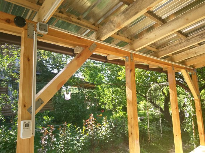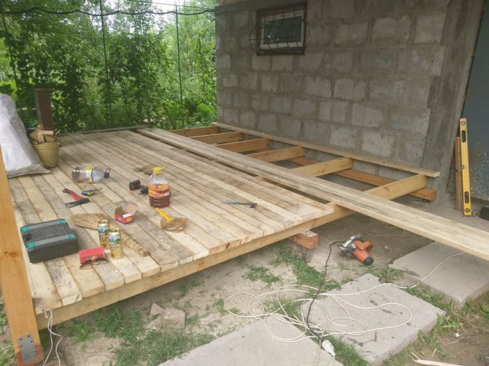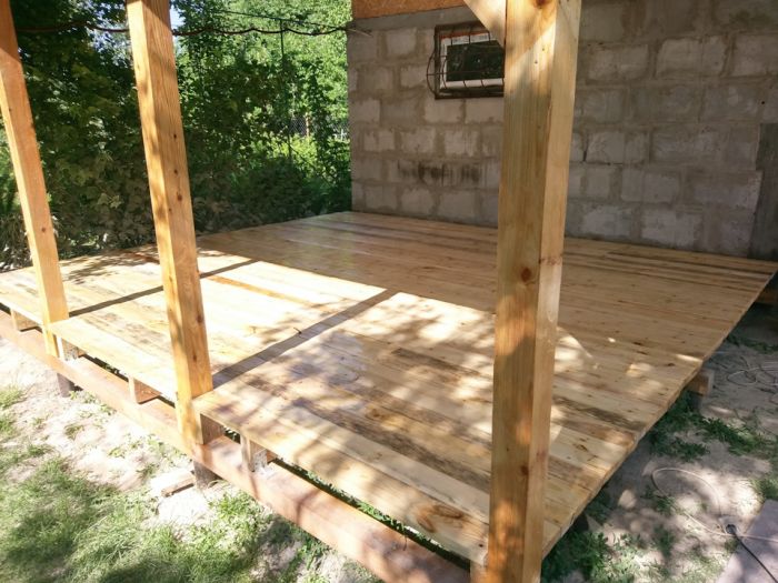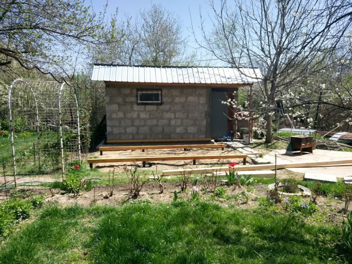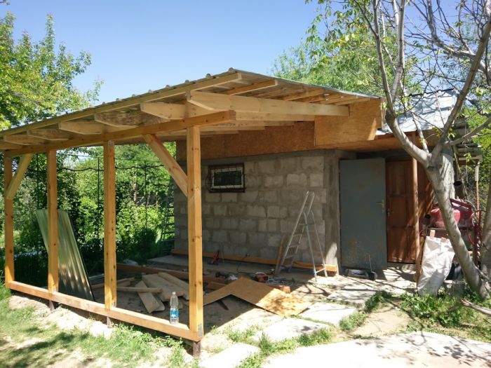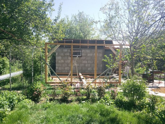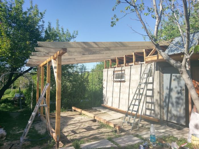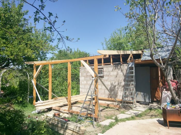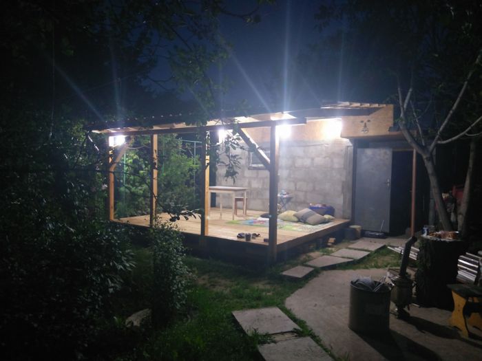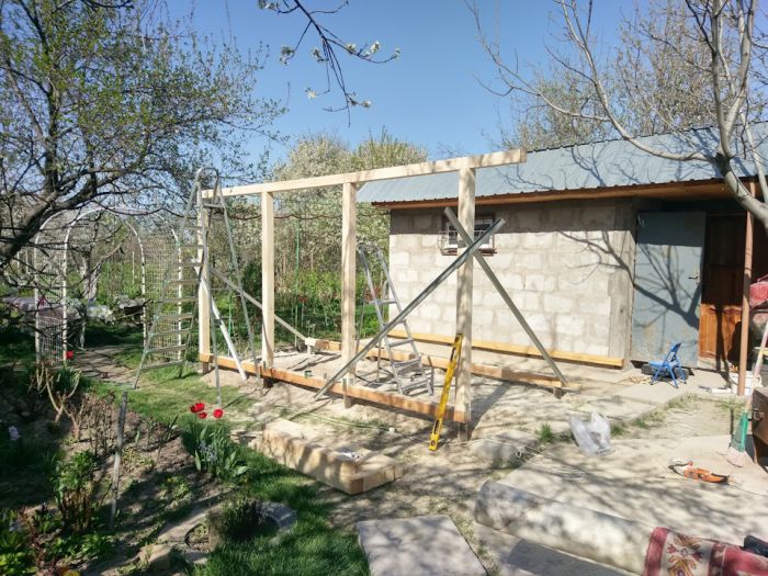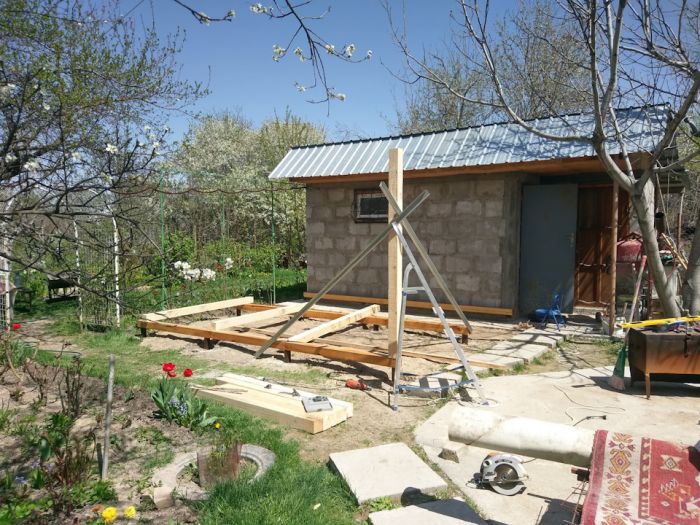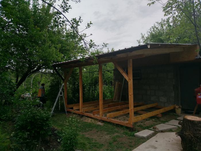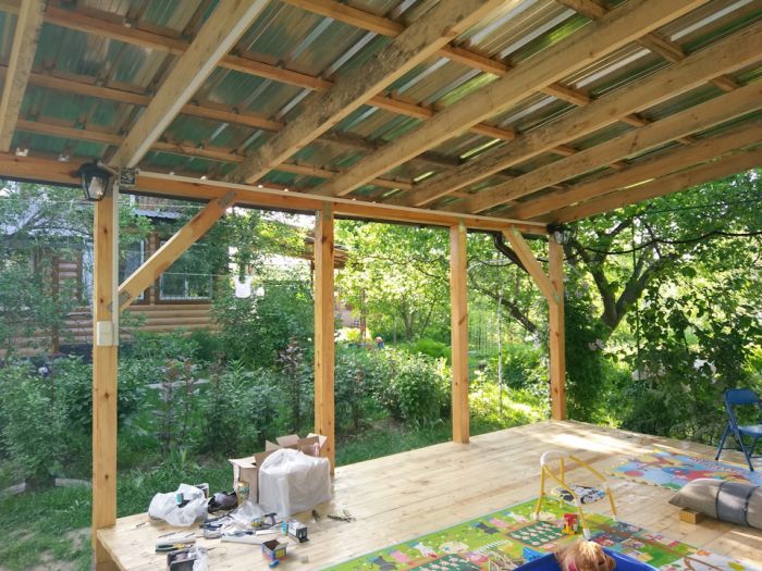 Всем привет. В общем свой дом, это нескончаемая стройка…))) Решили что нам не хватает такого летнего места где можно посидеть полежать и отдохнуть как телом так и душой))) И решили построить беседку. Было выбрано место, закуплен материал, и понеслась. В общем что вышло.