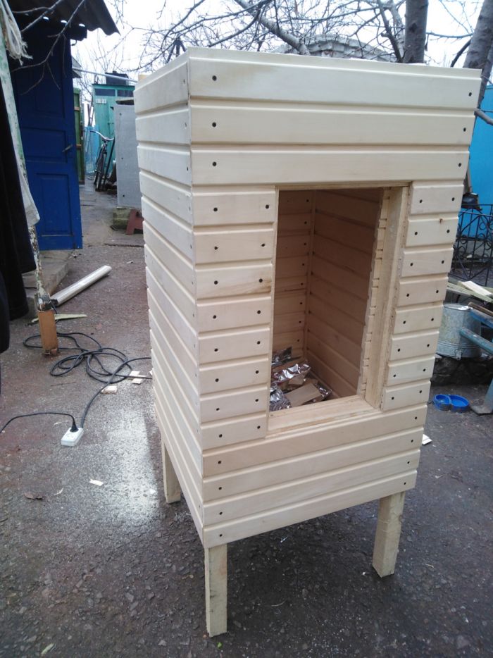 Ну первый опыт получен, азы копчения немного усвоил и захотелось чего-то современного, нового и я решил построить коптильню с автоматикой и обязательно что бы была конвенция. Покупать желание отпало сразу когда узнал её цену а это примерно 500-600 баксов. По этом я немного закупился материалами и каждый свободный выходной строял свою мечту. Ну и немного фотографий.