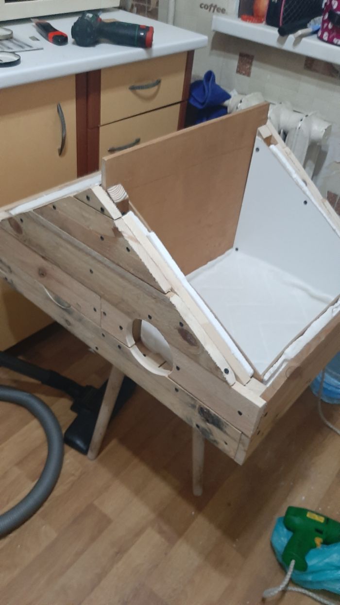 потом думал, примерял как лучше сделать внутренее пространство, ведь котиков 2, и могут не ужиться вместе