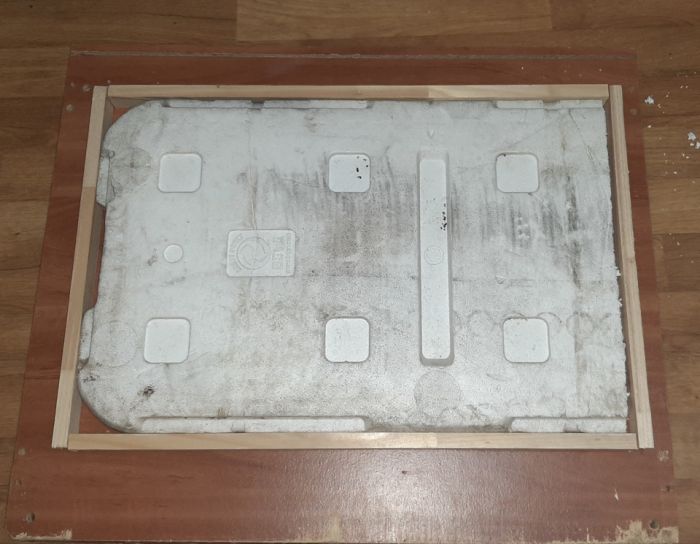 дно будки, пенопласт в середине, под ним металлический лист прибил, а пол из досточек
