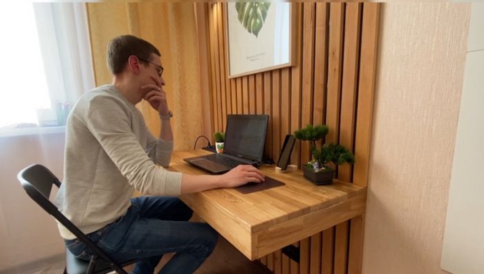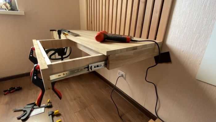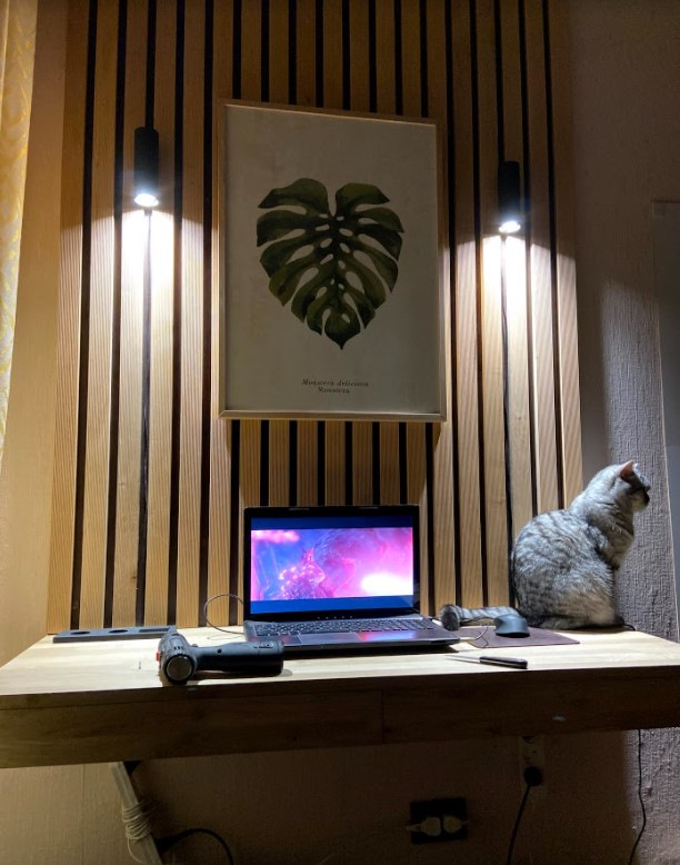 Всем привет! Задумал обновить свое рабочее место. А то временный столик задержался у меня уже на пару лет)) Захотелось чего-то необычного. Плюс давно хотел себе деревянныерейки на стену. Ну вот и решил попробовать. Рейки из ольхи. В магазина называются "заготовки для трапа"...