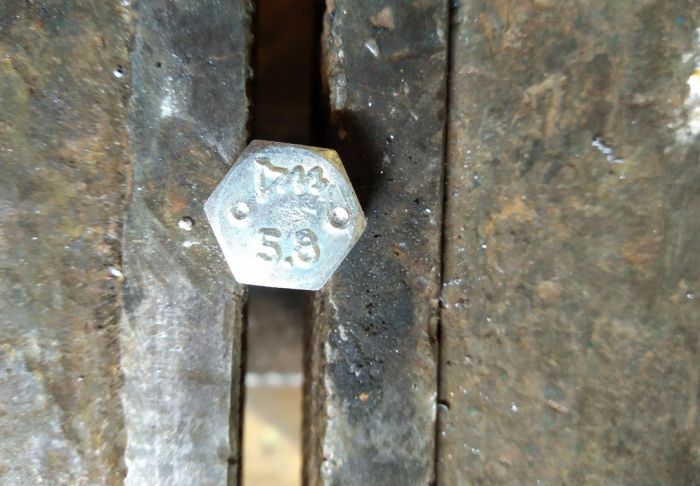 Первым делом я зажал в тисках болт и наметил кернером места сверления на шляпке ближе к краям, на фото ниже можно увидеть где именно нужно это сделать!