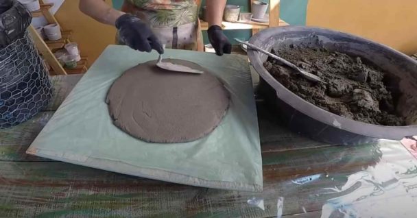 На следующем этапе устанавливаем на лепешку раствора форму, и обмазываем ее со всех сторон приготовленным раствором.
