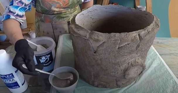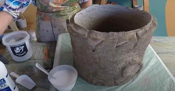 После того как сделали форму для горшка, можно приступать к приготовлению раствора. Для этого нам будут нужны следующие материалы: