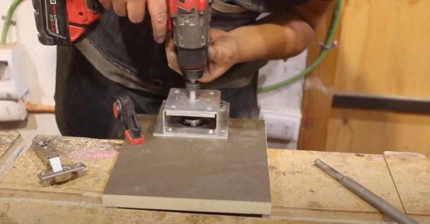 С той стороны, где прикреплена пластина, высверливаем отверстие под рабочую часть фрезы.