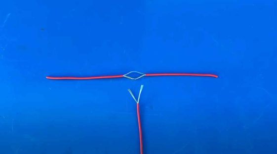 Берем два провода. На одном из них зачищаем изоляцию на конце, а на другом — посередине. Соответственно, пучок жил на одном из проводов делим на две «косички», а на втором — делаем «окошко».