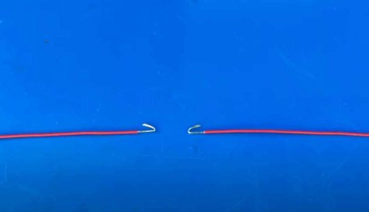 Это более простой вариант соединения многожильных проводов. Зачищаем изоляцию на концах проводов. Пучки жил сгибаем «крючком».
