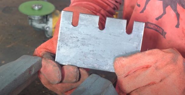 На следующем этапе приступаем к изготовлению ножей. Их мастер также решил сделать из толстого листового металла.