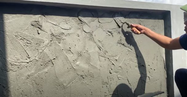 Продолжаем облагораживать следующий участок забора, выполняя все те же действия, что и в первом случае. Далее удаляем лишние куски штукатурного раствора.