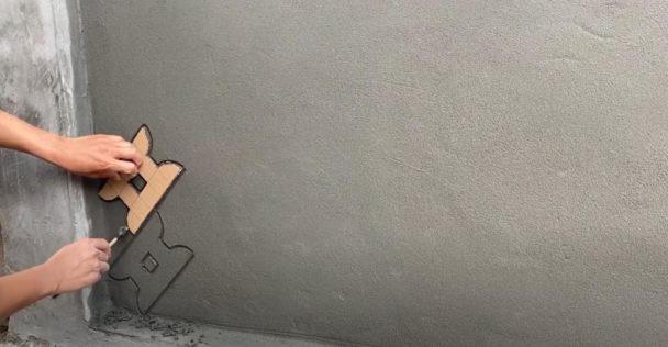 Первым делом необходимо подготовить поверхность. Главное условие — она должна быть оштукатурена. Смачиваем поверхность водой, после чего тонким слоем наносим цементное молочко.