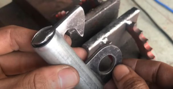 После этого изготавливаем и привариваем к трубе второе «ушко».