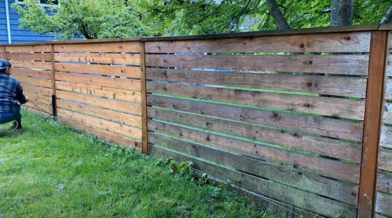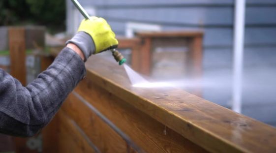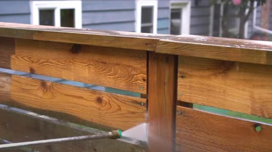 Первым делом необходимо будет помыть забор.