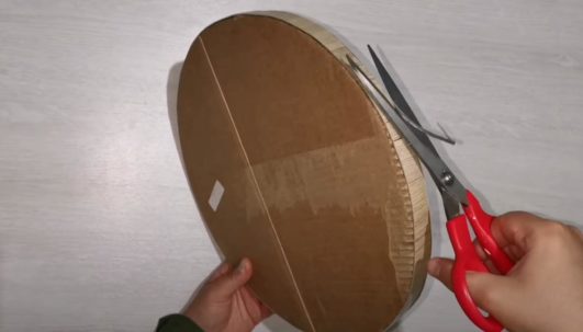 Дно кашпо делаем из гофрированного картона. Вырезаем три круга одинакового диаметра, склеиваем их вместе.