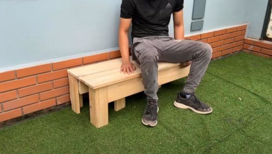 Смотрите, во-первых, у нас получилась довольно добротная кровать, которая не развалится после первого раза эксплуатации. А во-вторых, в сложенном состоянии она занимает минимум места и её можно использовать в качестве лавочки.