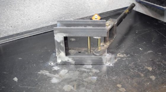 В завершении останется только приварить верхнюю часть станка. Устанавливаем подвижную часть с рычагом. Предварительно нужно зачистить сварные швы.