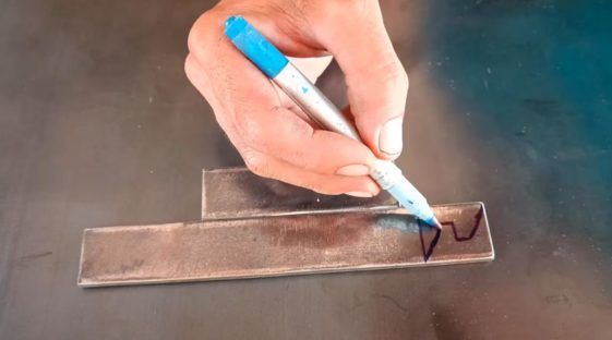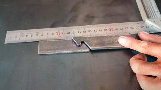 От металлической полосы отрезаем две заготовки длиной 18 см и 9 см. На конце длинной заготовки делаем разметку, чтобы вырезать зацеп.