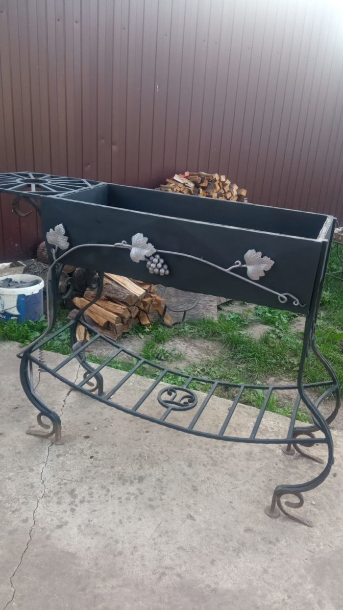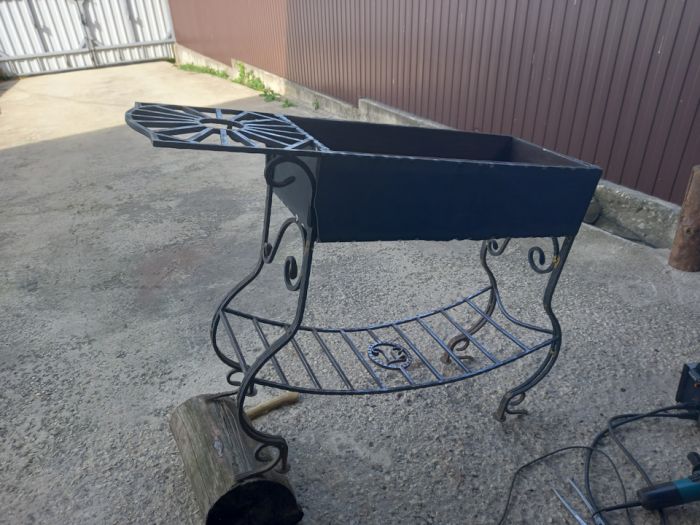 И так, мною сделан этот мангал 4,5 года назад. Из цельного, жатого прутка стали в 14мм.Клиент просто не заботился о нем. Не обслуживал после использования. Принято решение о перерождения его в новом формате. А далее просто мысль, только моя. Немного фантазии и рук.Были сделаны накладки в виде конвертов. Из 2мм стали, покрашены температурной краской . Так же была виноградная лоза 6мм, 8мм, 10мм. Куплены .+листья(без хвостиков) и часть грозди винограда.Вторая гроздь сделано мною.Все остальное сделано руками.Как всегда, не спеша. Результатом клиент доволен. Всем бобра и хорошего настроения.