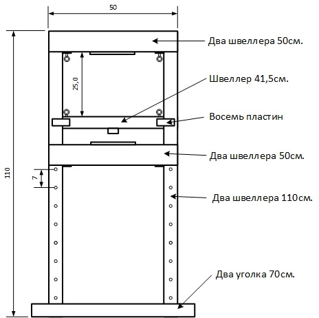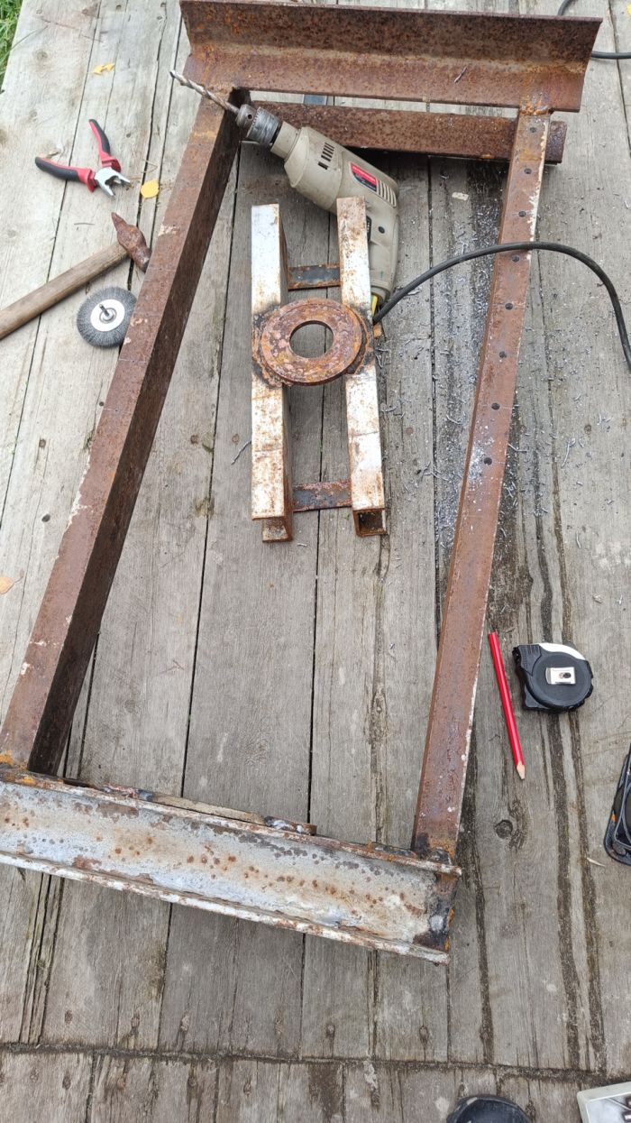 В общем, ничего нового не изобрёл. Сварил всё из швеллера 8см. Пластины из полосы, опора из уголка, площадки упора домкрата и прижима деталей из какого-то металлолома. Домкрат WIEDERKRAFT WDK-81200 купил на озоне. Крючки для пружин сделал из анкерных болтов. Пружины использовал от каркасного батута 177мм (тоже с озона).