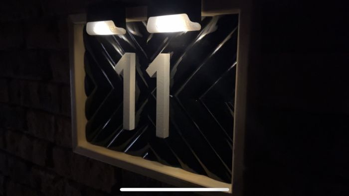 Белые цифры на черном фоне оч контрастны и днем отлично различимы, а ночью подсвечиваются фонариками. Так что поздние гости вас точно найдут))