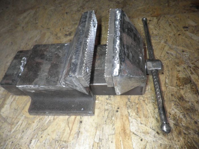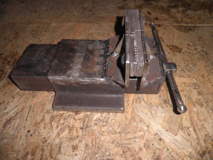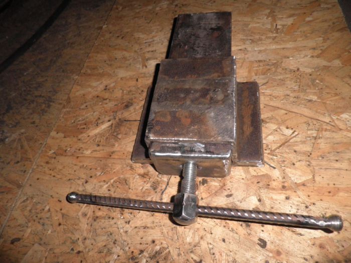 Всем здравствуйте. Задумал изготовить тиски из металла. Материал брал что в гараже было. Покупал только: шпильку высокопрочную с резьбой М18, гайки (7шт.), шайбы (3шт.).Толщина металла 6-8мм.
