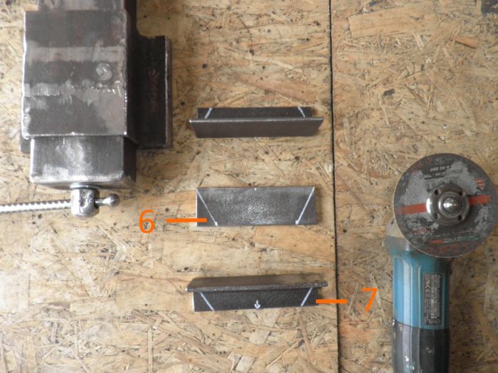 2. Взял два уголка- нарезал чтоб совпадало по ширине с нижней "площадкой" и высоте швеллера (на 1 мм выше).