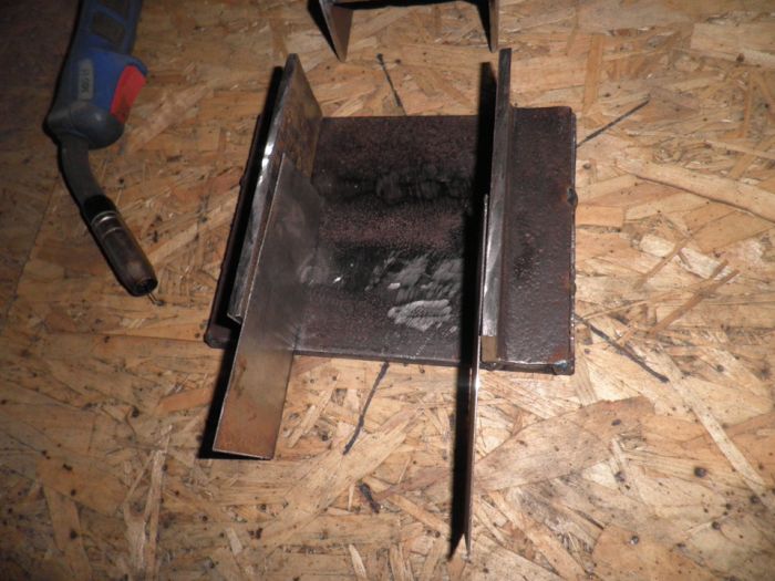 5. Далее приварил верхнею "площадку", перед тем обязательно поставить листы жести (1мм) между швеллером и верхней "площадкой" . По посджей сверху еще приварил одну "площадку"- чтоб прочнее было.