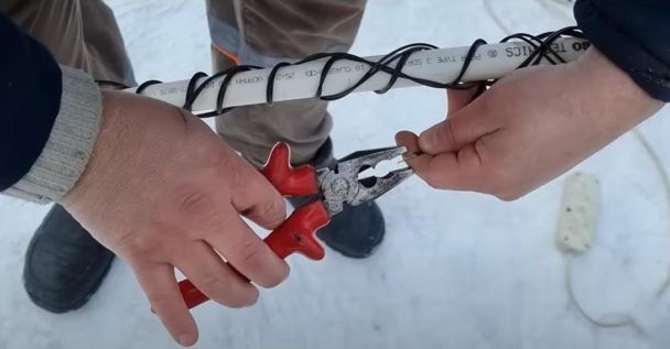 Обматываем металлическую или пластиковую водопроводную трубу подготовленным кабелем П-274М.