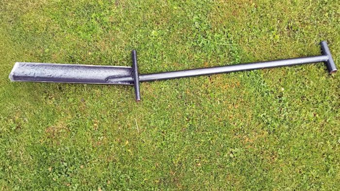Конструкция лопаты оказалась вполне себе удачной, но лучше использовать тонкостенные трубы, чтобы инструмент получился облегченным. Лопату можно немного модернизировать, если снизу упора для ноги приварить 2 ножа, которые будут разрезать газон и, тем самым, облегчать работу и делать ее аккуратней.