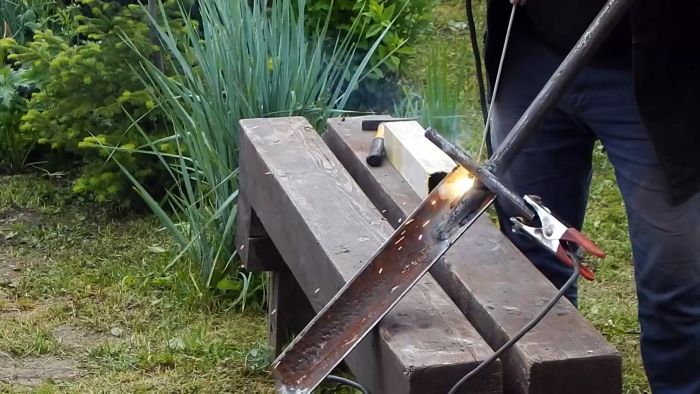 Процесс изготовления траншейной или дренажной лопаты из старых труб