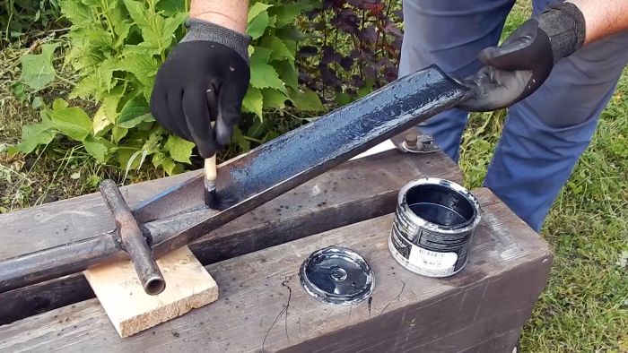 Производим зачистку сварных швов, подготавливаем поверхности лопаты к покраске и окрашиваем краской по металлу, например молотковой.