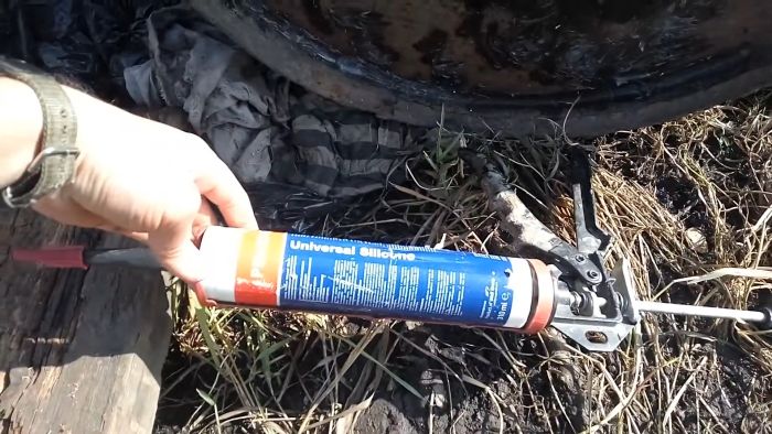 Но выход из тупиковой, казалось бы, ситуации есть. Силиконовый герметик! Он может быть как чёрным, так и прозрачным, разницы нет. Достаточно покрыть средством повреждённый участок бочки, и через некоторое время, необходимое для затвердения герметика, течь будет устранена.