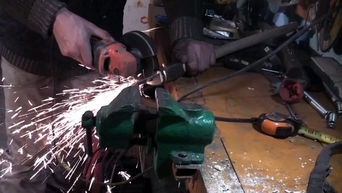 Инструменты: тиски, заточной станок, ручной напильник, второй топор или молоток, ножовка по дереву, болгарка.