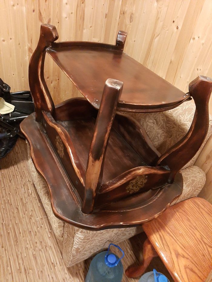 Весь каркас стола изготовлен из бруса 150х40, ножки вырезал при помощи лобзика а также ушм!