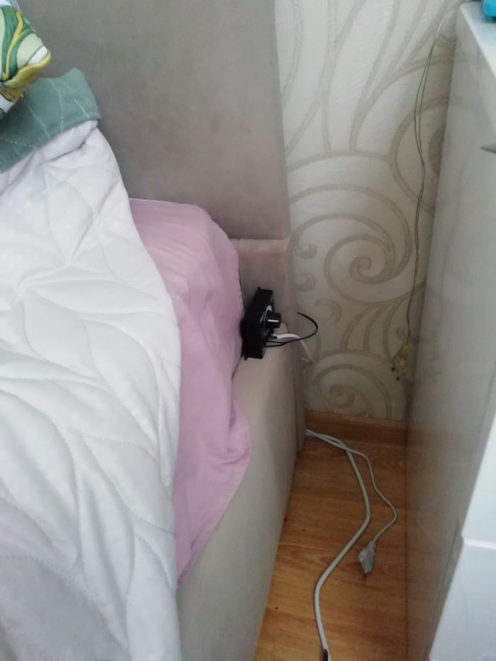 Есть один большой недостаток- если напротив телевизор, и зомбоящик- голова- ночничок находятся на одном уровне, то в нем будет видно это световое пятно. У меня высота разная, и даже сидя на кровати отражения в ящике нет.