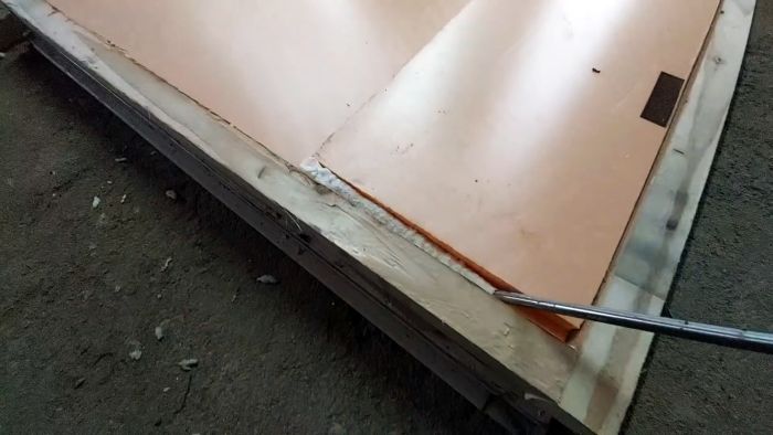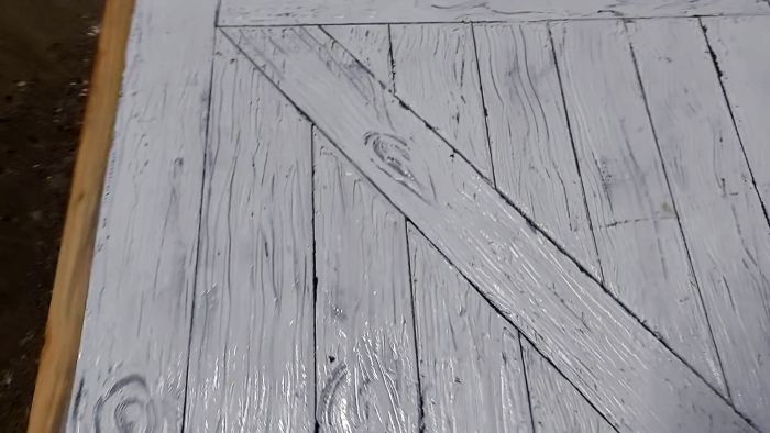 Процесс изготовления двери из старых половых досок и остатков пенопласта