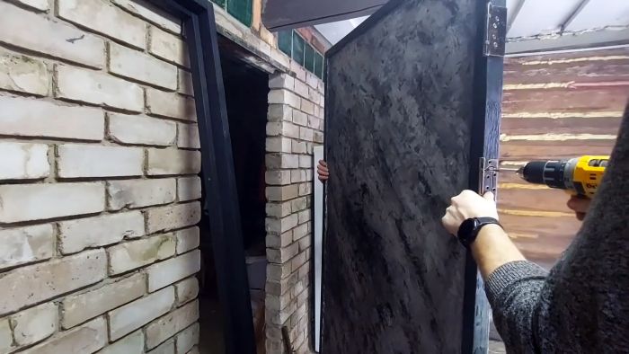 Устанавливаем дверное полотно в коробку, соединяем дверными петлями, монтируем ручки и наша дверь готова для установки в предназначенный для нее проем.
