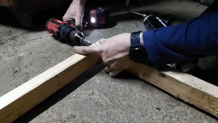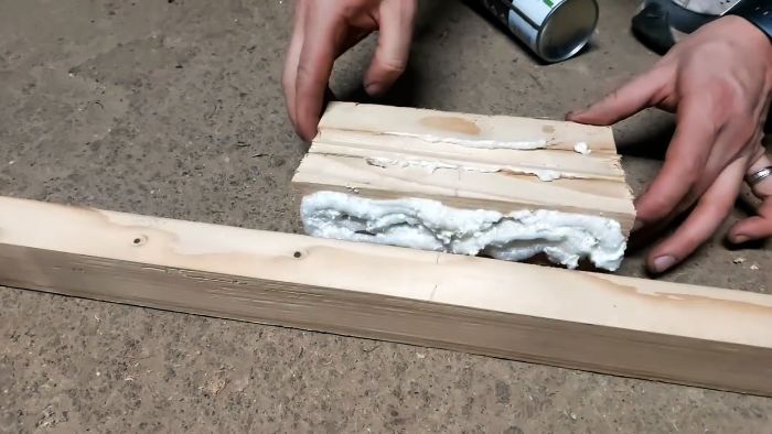 Чтобы не выбирать четверти, т. к. не позволяет толщина заготовок, дополнительно прикручиваем бруски, которые будут упором для дверного полотна.
