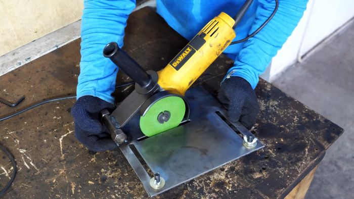 Длина опорной плиты приставки должна быть равна длине «болгарки», плюс по 15 см., с каждой стороны.