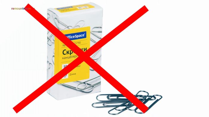 Некоторые советуют использовать канцелярские скрепки, но они изготовлены из мягкого металла: они легко гнутся и сетка может легко вылететь.