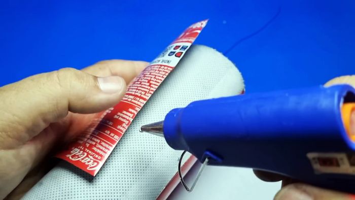 Оборачиваем алюминиевым листом фильтр, фиксируем горячим клеем.