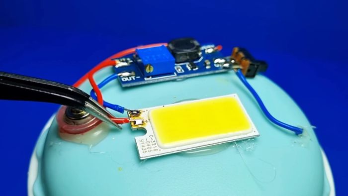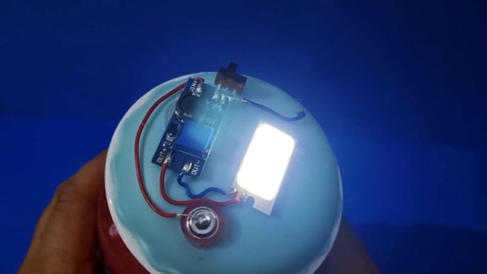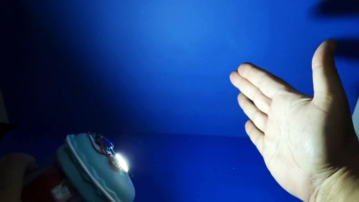 Все готово к испытанию фонаря. Щелкаем переключатель.