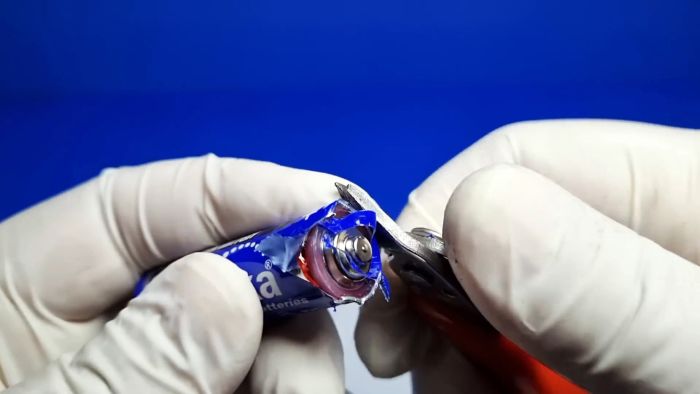 Разбираем солевую батарейку и извлекаем из нее графитовый электрод.