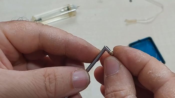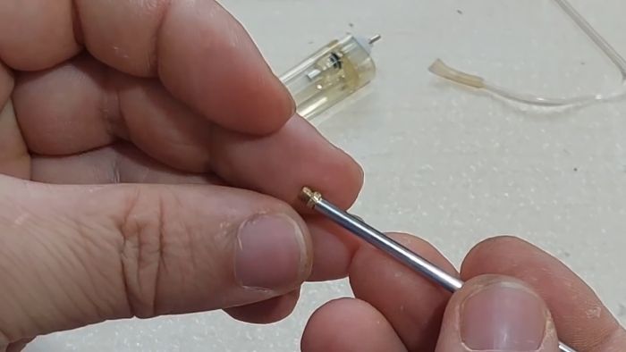 Его второй конец подключается к клапану на колбе. После этого нужно спаять трубку со спицей.