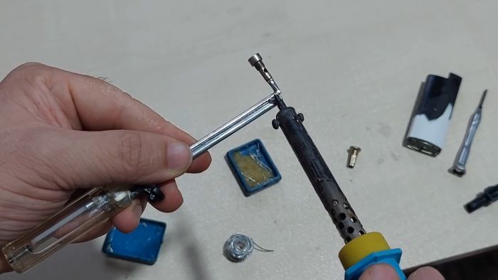 Для обжига дерева или тонкой пайки можно использовать миниатюрную газовую горелку. Несмотря на небольшой размер, она выдает весьма высокую температуру. Такую горелку конечно можно купить, но если у вас есть пара сломанных зажигалок, то ничего не помешает сделать ее своими руками.