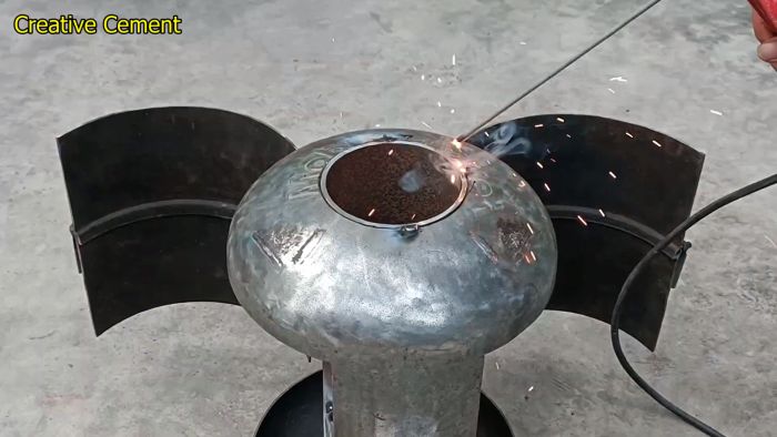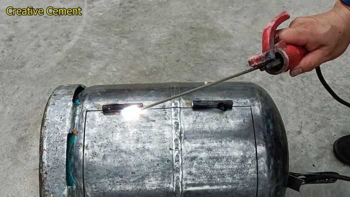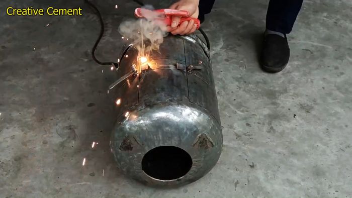 Затем свариваем их. Также нужно подварить трубы к стенкам баллона.