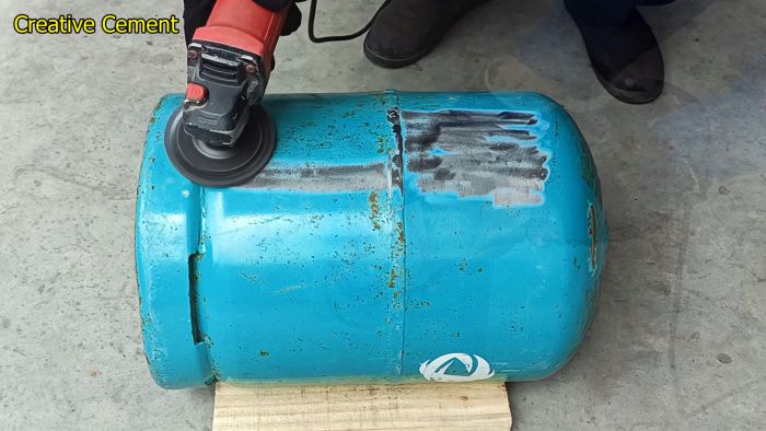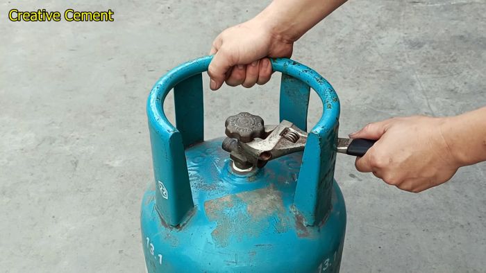 Для такой печки лучше всего подходит баллон на 27 л. Выкручиваем его запорную арматуру, и заливаем воду под самый верх.
