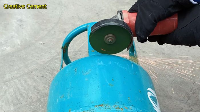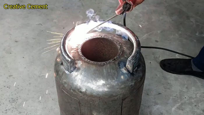 Круглая труба приваривается сплошным швом к баллону вверху.
