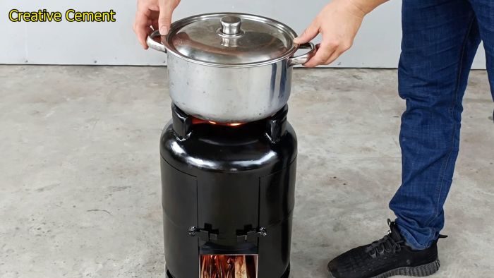 Жители частных домов и дачники частенько готовят летом на уличной дровяной печи, которая позволяет утилизировать ветки от подрезки сада. На ней удобно варить варенье и прочие зимние заготовки. Если у вас еще нет подобной печи, тогда сделайте ее из газового баллона. Предлагаемая конструкция печки еще полезна и тем, что она работает и как духовка.
