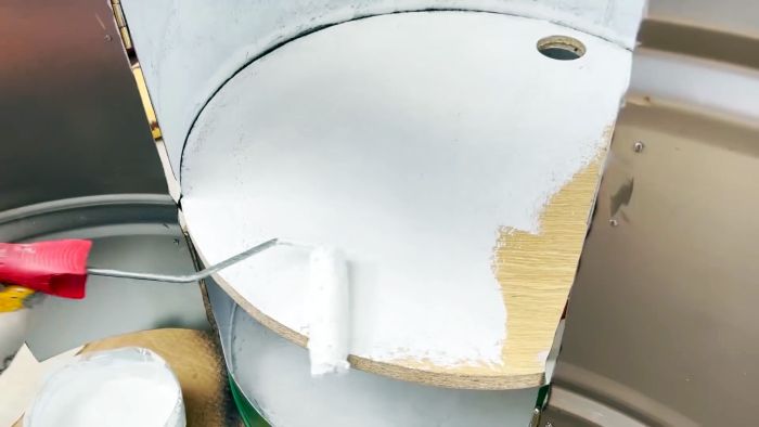 Окрашиваем бочку внутри и снаружи в цвета по своему усмотрению.