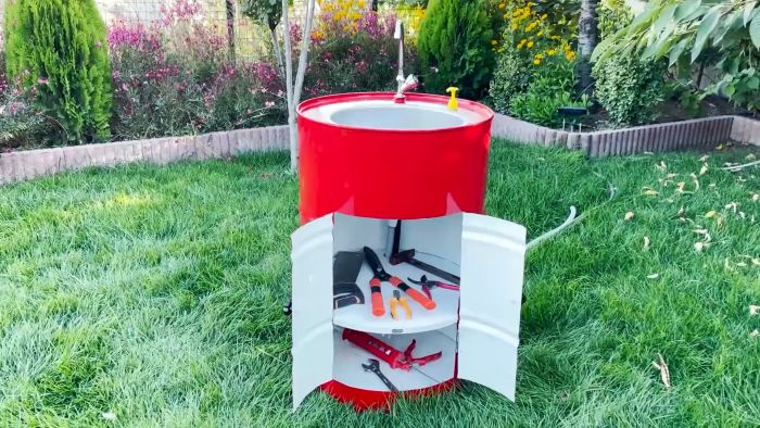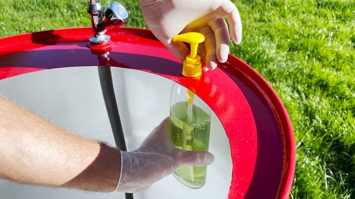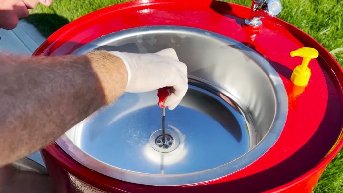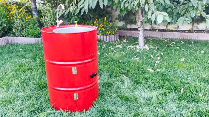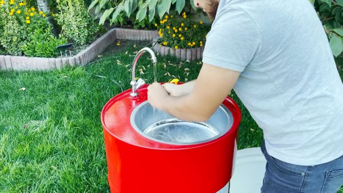На подворье или на дачном участке после некоторых работ необходимо помыть руки. Использовать для этого шланг не очень удобно. Куда лучше сделать уличную раковину, используя старую металлическую бочку объемом 200 литров. Справиться с такой работой сможет любой взрослый человек и для этого не нужны специальные навыки и знания.